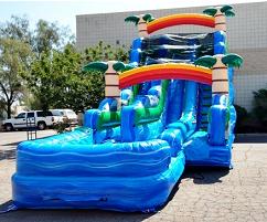 Inflatable water slide rentals in Phoenix, Glendale, Peoria, Avondale, Scottsdale, Deer Valley. Arizona Jumpers offers a variety of water slides for rent in arizona. from tall waterslide rentals to combo water units, we have inflatable waterslide rentals for every age group. if you are planing a summer party or event, then inflatable water slides are a great way to keep every one cool and having fun. Arizona Jumpers is a licensed and insured water slide rental company in AZ. We have also teamed up with Bouncy Bouncy Inflatables to provide our customers even more water slide, wet bouncers, wet inflatable options. Thank You